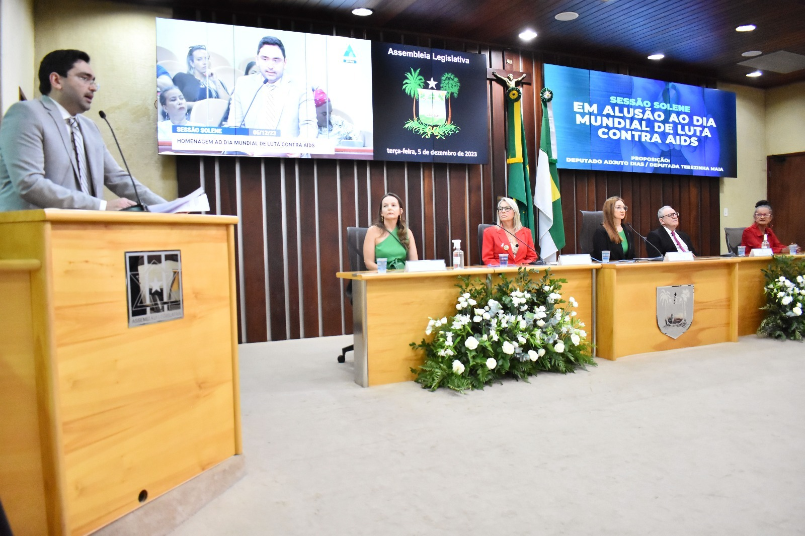 Em seguida, a deputada Terezinha Maia reforçou que o objetivo da solenidade é destacar e refletir sobre o Dia Internacional de Luta Contra a AIDS.